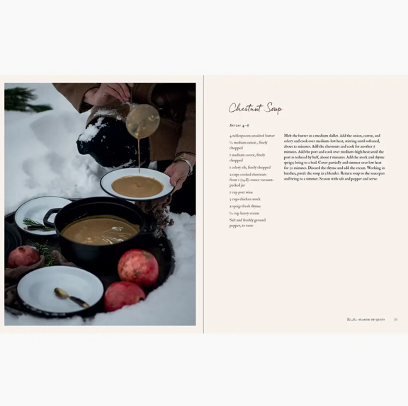 Alpenglow is filled with creative parties and fun country activities throughout the four seasons. The stories and scenes are set in the high mountain valley of Jackson Hole, Wyoming—but the gatherings and parties could take place anywhere. Hillary Munro knows how to turn routine activities and yearly rituals into unique events, with delicious meals and take-home favors prepared with foods she grows and preserves and materials she forages in the woods. Celebratory menus follow special times, like a cowgirl trail ride, a pasture fiesta with friends, a comfy tent camp-out with a spouse, wood chopping with family, foraging in the woods for craft materials, an ice fishing expedition, peony picking, and more. A jewel of a book celebrates creative outdoor entertaining in the high Mountain West.